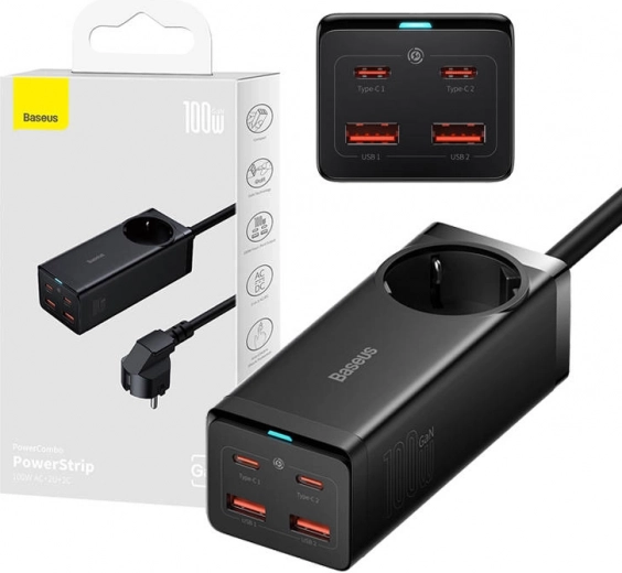 Kompaktní napájecí lišta Baseus GaN3 Pro kombinuje 100W rychlé nabíjení, 4 porty (2× USB‑C + 2× USB‑A) a integrovanou AC zásuvku v elegantním černém provedení. Díky technologii GaN3 Pro je účinnější, menší a bezpečná – s pokročilou víceúrovňovou ochranou. Součástí je 1,5m napájecí kabel a USB‑C/USB‑C kabel pro okamžité použití.