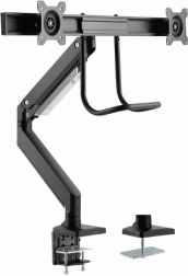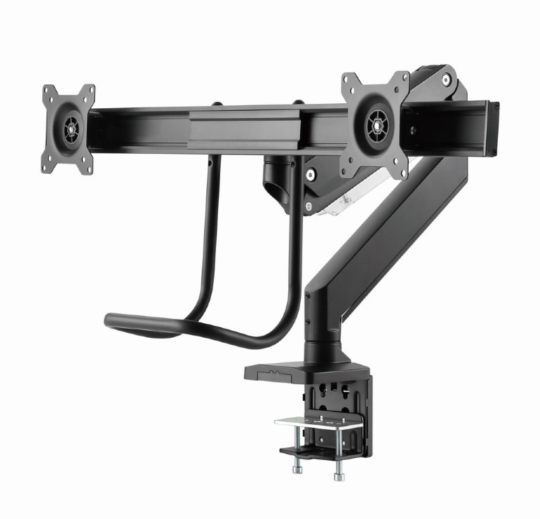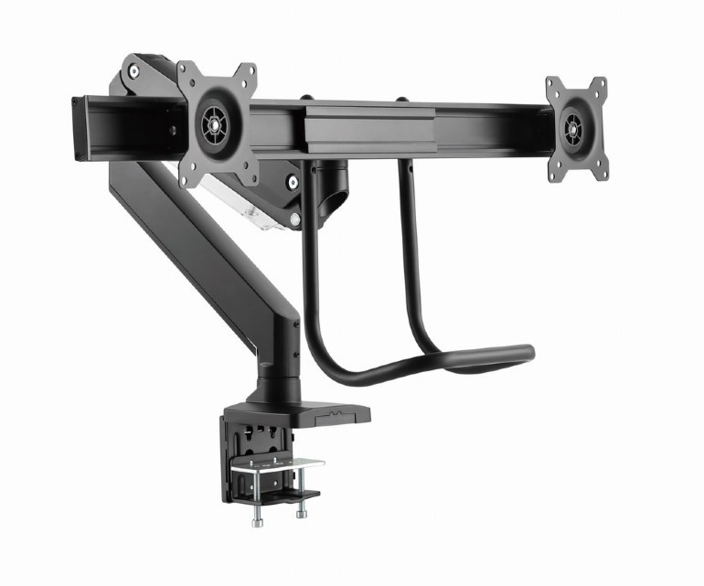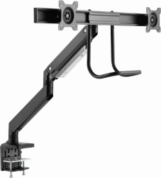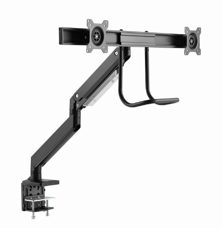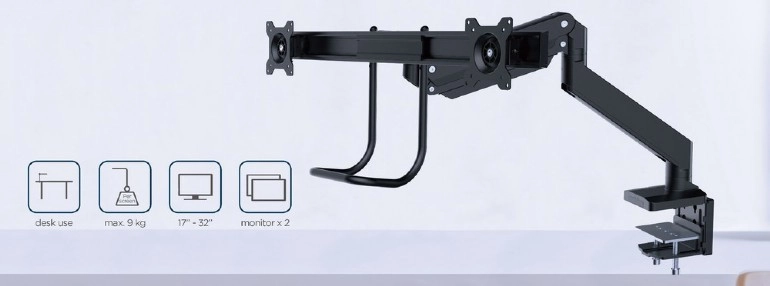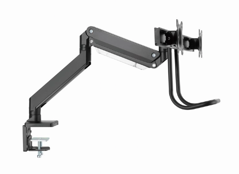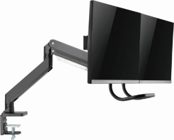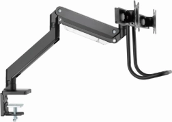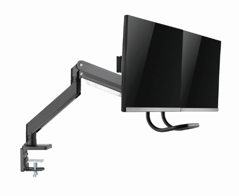 Uvolněte místo na stole a získejte zdravější pracovní polohu s tímto ergonomickým držákem pro dva monitory až 32". Díky plynovým pružinám nastavíte výšku i náklon jedním dotykem, otočné a výsuvné rameno umožní ideální umístění obrazovek vedle sebe a pevné uchycení svorkou nebo průchodkou zajistí stabilitu na každém stole.