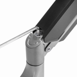 Plynová pružina vyrovnává hmotnost monitorů a umožní plynulé nastavení výšky, náklonu i vzdálenosti jednou rukou.