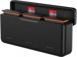 Konstrukce 2v1 spojuje nabíjecí stanici a odolné přepravní pouzdro. Díky magnetickému uzávěru a vyhrazenému prostoru pro dvě TF (microSD) karty zůstane vaše výbava v bezpečí i v terénu. Kompaktní rozměry se skvěle hodí do batohu – ideální řešení pro cestování a dlouhé natáčecí dny.