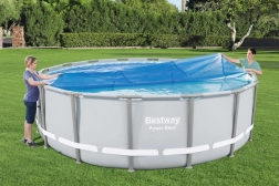 Bestway solární plachta je určena pro rámové a nafukovací bazény o rozměrech 457 cm a 488 cm. Díky speciální konstrukci tvořenou vzduchovými bublinkami snižuje ztrátu tepla z vody ohřívané sluncem. Plachta se vznáší na hladině vody, což zajišťuje pomalejší ztrátu tepla během noci. Použitím solární plachty udržíte vodu v bazénu déle teplou. Průměr plachty je přibližně 462 cm. Součástí balení je praktická taška pro snadné uložení.