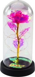 Křišťálová růže pod kopulí s LED osvětlením je elegantní a symbolický dárek, který vyjadřuje Vaše city a přináší výjimečný charakter do každého interiéru. Její měnící se barvy pod vlivem jemného LED světla vytvářejí nezapomenutelnou atmosféru, ideální pro romantické příležitosti.