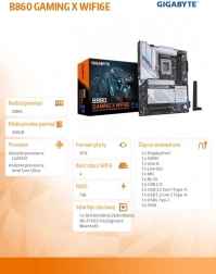 Postavte si výkonný a spolehlivý počítač na platformě GIGABYTE B860 Gaming X Wi‑Fi 6E. Robustní napájecí kaskáda 12+1+2 Twin Hybrid VRM s pokročilým chlazením VRM Thermal Armor Advanced zajišťuje stabilitu i při vysoké zátěži moderních procesorů Intel Core Ultra (2. generace).