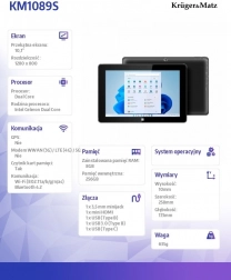 Krüger&Matz EDGE 1089 je kombinací tabletu a notebooku vhodnou pro jakýkoliv úkol. Díky 10,1palcovému displeji s rozlišením 1280 x 800 pixelů vám poskytne čistý obraz ideální pro produktivitu i zábavu. S dvoujádrovým procesorem Intel Celeron N4020 dosáhnete hladkého výkonu i při náročnějších aplikacích.