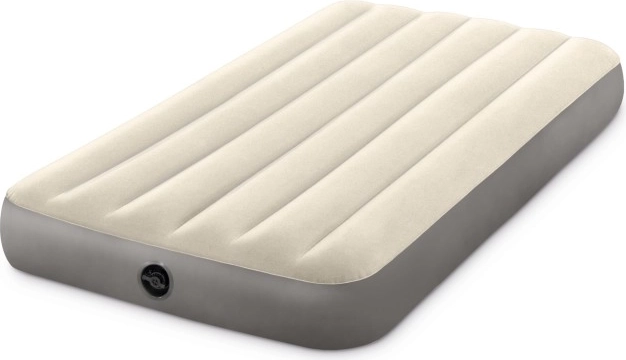 Jednolůžková nafukovací matrace INTEX s rozměry 191 × 99 × 25 cm nabízí komfortní spánek doma i na cestách. Díky technologii Dura-Beam Fiber je stabilní, dobře drží tvar a poskytuje lepší oporu páteře. Horní vrstva z měkkého, voděodolného veluru je příjemná na dotek. Snadné nafukování zajišťuje ventil Boston, součástí balení je i opravná záplata. Maximální nosnost 136 kg.