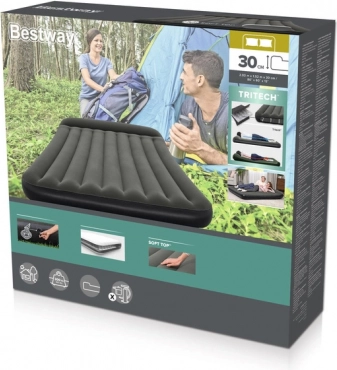 Dvouosobová nafukovací matrace BESTWAY 203 × 152 × 30 cm s technologií Tritech, I-Beam a velurovým povrchem. Nosnost 300 kg, integrovaný polštář.