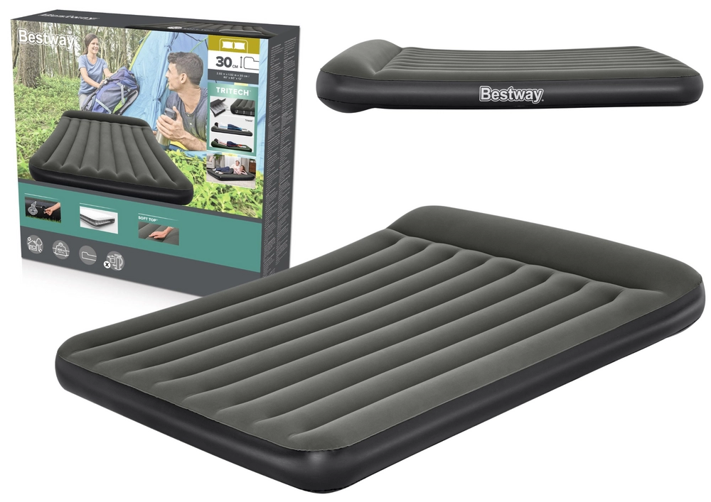 Užijte si klidný spánek kdekoli. Tato dvoulůžková matrace s rozměry 203 × 152 × 30 cm kombinuje trvanlivý PVC materiál s měkkým velurem pro maximální pohodlí. Vnitřní I-Beam výztuhy a vícevrstvá technologie Tritech zajišťují pevnou konstrukci, která se nedeformuje ani při dlouhodobém používání.
