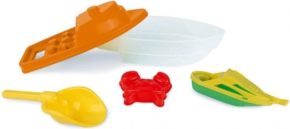 Tato pestrá plastová loďka je nezbytným doplňkem pro každé dítě, které si rádo hraje na pláži. Sada obsahuje také různé formičky a nádoby, které umožňují tvoření v písku a vodě.