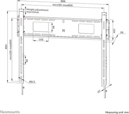 Držák na zeď Neomounts má hloubku profilu 4,2 cm, což ho činí vhodným pro obrazovky, které splňují VESA normy od 100x100 do 800x600 mm. Umožňuje montáž více obrazovek díky rychle připojitelné nástěnné desce a chytrému servisnímu postavení podpěrky, které zajišťuje snadný přístup ke kabelům a konektorům.