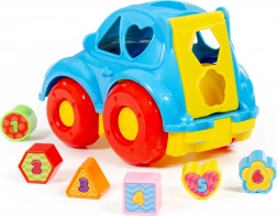 Autíčko se snadno odráží a jezdí díky velkým kolečkům – děti si užijí spoustu pohybu i mimo třídění tvarů.