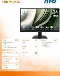 Plochý 23,8″ monitor MSI s LED panelem, Full HD rozlišením a plynulou 100Hz obnovovací frekvencí je skvělou volbou pro práci i zábavu. Nabízí ostrý obraz, úsporný provoz a univerzální černé provedení do každého prostředí.