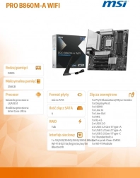 Kompaktní a výkonná základní deska MSI PRO B860M-A WIFI pro patici LGA 1851 nabízí podporu procesorů Intel Core Ultra, rychlou paměť DDR5, konektivitu PCIe 5.0 a M.2, špičkové chlazení Frozr Guard a moderní síťové technologie včetně Wi‑Fi 7, 5G LAN a Thunderbolt 4. Díky promyšlenému designu EZ DIY a funkcím Core Boost, Memory Boost a Audio Boost získáte stabilní výkon, snadnou montáž a čistý zvuk pro práci i hraní.