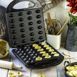 Vytvářejte křupavé skořápky ve tvaru oříšků a plňte je oblíbeným krémem – vanilkovým, čokoládovým i slaným. Díky XL kapacitě připravíte pohoštění pro rodinu i hosty během chvilky. Nepřilnavý povrch zajistí snadné vyjmutí i čištění bez připalování.