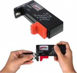 Tester je nezávislý na napájení – ke své činnosti využívá testovanou baterii, takže je vždy připraven k použití. Ověříte s ním širokou škálu článků: AA (R6), AAA (R3), C (R14), D (R20), knoflíkové CR 1,5 V a 9 V (R9). Čitelný ukazatel přehledně zobrazí stav nabití.