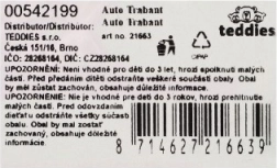 Ikonický model vozu Trabant od značky Welly v měřítku 1:60 potěší malé i velké sběratele. Kovové provedení, otevíratelné dveře, detailní interiér a volný chod zajišťují skvělý zážitek ze hry i vystavení. Délka cca 7 cm, mix barev, vhodné od 3 let.