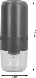 Průhledná nádoba o objemu 150 ml umožňuje kontrolu nad výsledkem, zatímco ovládání jedním tlačítkem zaručuje intuitivní používání. Díky kompaktním rozměrům se mlýnek hodí do každé kuchyně a skvěle poslouží i na cestách – stačí připojit k notebooku, powerbance či nabíječce.