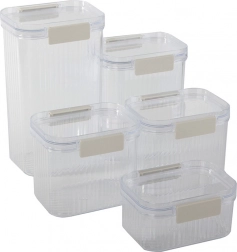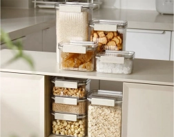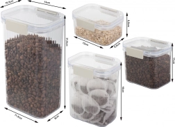 Využijete je na vše od těstovin, rýže a cereálií až po mouku, cukr, ořechy či sušenky. Odolný plast se snadno čistí a bezpečné klipy usnadňují každodenní používání.