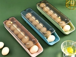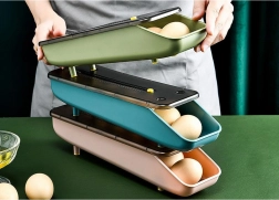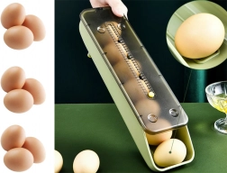 Kompaktní organizér na vejce do lednice zajistí pořádek a ochranu. Díky posuvnému víku s ukazatelem data a automatickému posunu vajec dopředu máte vždy snadný přístup, lepší přehled o čerstvosti a úsporu místa. Pojme přibližně 7 vajec a lze jej stohovat.