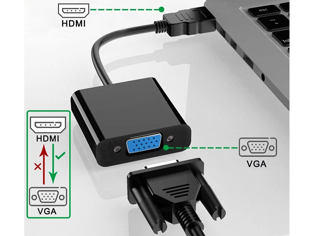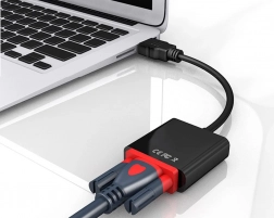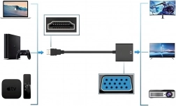 Adaptér funguje v režimu plug and play. Jednoduše jej připojte mezi HDMI zdroj a VGA displej a ihned začněte promítat.