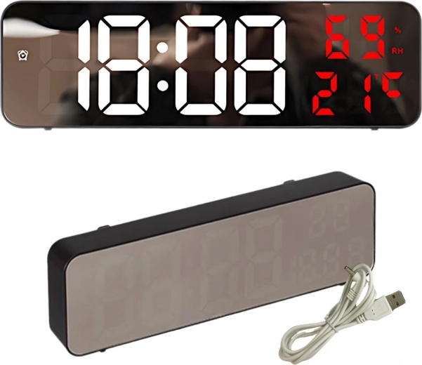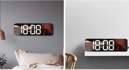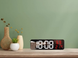 Tyto digitální hodiny mají multifunkční vlastnosti. Zobrazují čas, datum, teplotu ve stupních Celsia nebo Fahrenheita, úroveň vlhkosti a dokonce slouží jako budík se snooze funkcí. Díky zrcadlovému povrchu také působí jako dekorativní prvek v každém interiéru.
