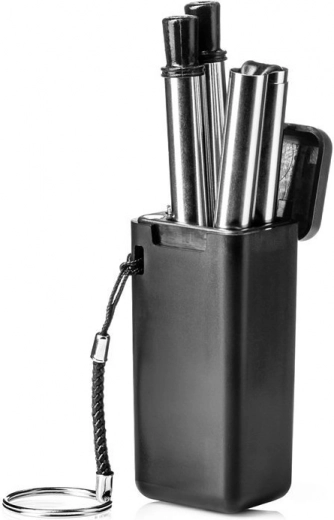 Skládací kovové brčko, ideální pro snadné skladování a přenosnost, bez ztráty na funkčnosti.