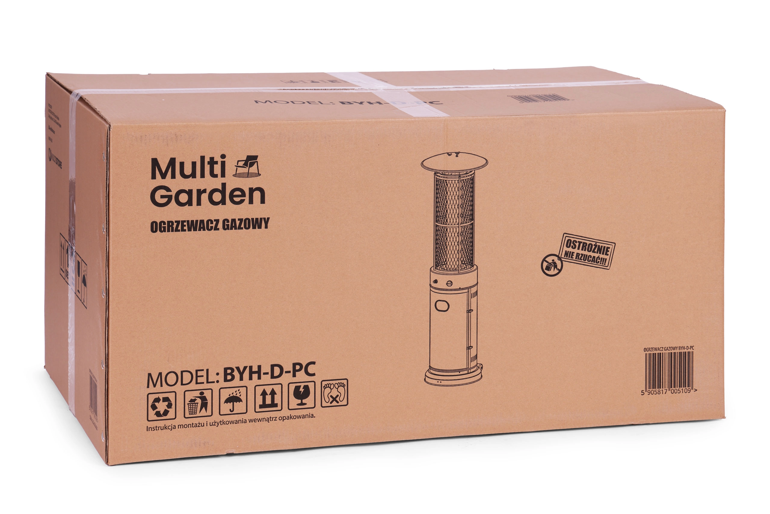 Plynový ohřívač MULTIGARDEN promění vaši terasu či zahradu v útulné venkovní posezení. Díky výkonu 11 kW rychle vyhřeje okolí a viditelný vysoký plamen za skleněným krytem vytvoří příjemnou atmosféru. Plynulá regulace umožní přesně nastavit intenzitu tepla podle počasí i velikosti prostoru.