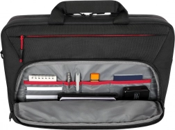 Promyšlené rozvržení kapes usnadňuje každodenní organizaci – od napájecích adaptérů a myši po doklady, peněženku a mobil. Horní otevírání (topload) umožňuje rychlý přístup, nastavitelný ramenní popruh a poutko pro nasunutí na madlo kufru zase zjednoduší cestování.