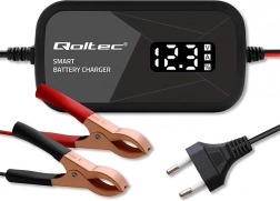 Tato inteligentní nabíječka 12V s proudem 2A je ideální pro akumulátory 2–20Ah v automobilech, motocyklech, lodích, sekačkách či čtyřkolkách. Mikroprocesor automaticky přizpůsobuje napětí a proud stavu baterie, brání přebití a po plném dobití přechází do udržovacího režimu. Velký LED/LCD displej sekvenčně zobrazuje napětí (V), proud (A) i stav nabití (%) pro snadné sledování.