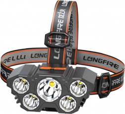 Univerzální čelová LED svítilna s 5 diodami (1× T6 + 4× XPE) nabídne dosvit až 200 m, 4 režimy svícení a 90° náklon. Díky krytí IP65, akumulátoru 4800 mAh s výdrží až 10 hodin a USB nabíjení je ideální na turistiku, kemping i práci. Lehká a odolná konstrukce s pohodlným nastavitelným popruhem.
