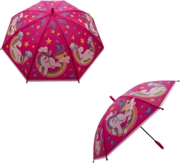 Roztomilý dětský deštník s motivem jednorožců ochrání vaše děti před deštěm a zároveň potěší hravým designem. Díky vystřelovacímu mechanismu se rychle otevře, pevná ocelová konstrukce zajistí stabilitu a plastová rukojeť pohodlné držení i pro drobné ruce.