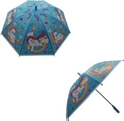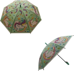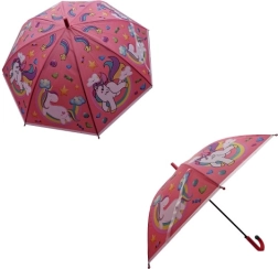 Rozjasněte deštivé dny s tímto kouzelným dětským deštníkem s motivem jednorožců. Nabízí vystřelovací otevírání, pevnou ocelovou konstrukci a pohodlnou plastovou rukojeť pro snadné držení. Díky praktickému pásku na druk se snadno zavírá a přenáší. Dostupný v různých barevných variantách podle aktuální nabídky.