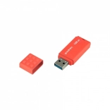 USB flash disk Goodram UME3 kombinuje klasický design s intenzivní barvou obalu, který zajišťuje bezpečné používání díky protiskluzovému vzoru na krytu. Kryt je snadno snímatelný a lze jej připevnit na opačný konec, což zabraňuje jeho ztrátě. Praktická perforace umožňuje připnutí přívěsku.