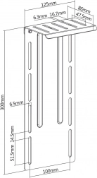 Univerzální kompatibilita se standardními VESA otvory 100x100 mm zaručuje snadnou instalaci. Nastavování výšky a možnost montáže s policí vpřed nebo vzad umožňuje přizpůsobit pozici připevněné zařízení podle vašich potřeb.