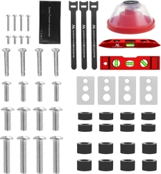 Součástí balení je vše potřebné pro montáž, včetně kompaktní vodováhy pro přesné vyrovnání, praktického odpylovače s vrtačkou pro čistou práci, čisticích hadříků pro dokonalý výsledek a tří úchytných pásků pro organizaci kabeláže.