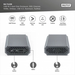 Obal pro pevné disky nabízí vysokou kompatibilitu s moduly M.2 různých formátů (2230, 2242, 2260 a 2280) a maximální kapacitou 8 TB, což zajišťuje dostatek prostoru pro všechny soubory a data. Díky USB 4.0 technologii je zajištěn rychlý přenos dat o rychlosti 40 Gb/s, což znamená plynulou práci a efektivní přenos souborů.