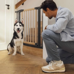 Montáž zábrany je velmi snadná a nevyžaduje žádné nástroje ani vrtání do stěn či dveřních rámů. Díky systému 4-bodového tlakového upevnění je zábrana bezpečně upevněna, aniž by došlo k poškození povrchů. Navíc ochranné podložky chrání stěny a podlahy před případnými škrábanci, což vám pomůže udržet estetičnost vašeho domova.