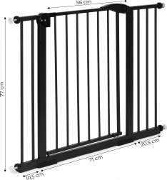 Nastavitelná šířka 74–105 cm se snadno přizpůsobí většině otvorů v domácnosti. Přiložené nástavce a napínací šrouby umožní přesné doladění. Zábrana je vhodná nejen pro rodiče malých dětí, ale také pro majitele psů a koček, kteří potřebují bezpečně vymezit prostory.