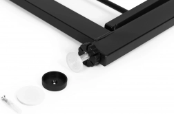 Montáž je bez nářadí a bez vrtání díky 4bodovému tlakovanému uchycení. Součástí balení jsou ochranné podložky, které brání poškození povrchů, a také příslušenství pro pevné přišroubování, pokud požadujete trvalou instalaci. Odolná práškově lakovaná ocel zajišťuje dlouhou životnost a stabilitu.