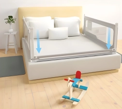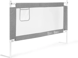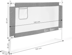 Bezpečnostní zábrana na postel o šířce 150 cm od ECOTOYS chrání děti před pádem, přitom umožňuje rodičům komfortní společné spaní. Nabízí nastavitelnou výšku, sklopné horní madlo pro snadný přístup, prodyšnou síťovinu a praktickou kapsu na drobnosti. Univerzální montáž, možnost propojení více zábran a pevná ocelová konstrukce zajišťují dlouhou životnost a maximální bezpečí.