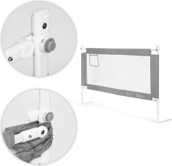 Univerzální systém uchycení usnadní instalaci na různé typy lůžek a možnost propojit více panelů vytvoří chráněný prostor po obvodu postele. Odolná kombinace oceli, PP a kvalitní textilie garantuje stabilitu a snadnou údržbu – potah lze sejmout a vyprat.