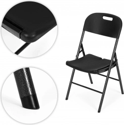 Židle se skládají jedním pohybem, což umožňuje rychlou a snadnou přípravu míst k sezení pro více hostů. Kovový rám je práškově lakován pro odolnost vůči povětrnostním vlivům. Ochranné koncovky na nohách předcházejí poškrábání podlah a zajišťují stabilitu židle.