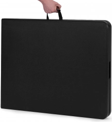 Díky snadnému skládání do kufříku s praktickým madlem je stůl snadno přenosný a skladovatelný.