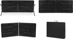 Stůl je charakteristický tím, že se dá složit do kompaktního kufříku. Po složení zabírá minimální prostor a snadno se přenáší – vestavěné madlo umožňuje jednoduché nošení a uložení. Navíc rychlá montáž bez použití nástrojů znamená, že je připraven k použití během několika sekund.
