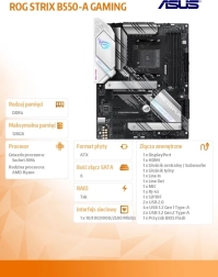 ROG STRIX B550-A GAMING kombinuje moderní výbavu vyšší třídy s jedinečným stříbrno‑bílým designem. Podporuje PCIe 4.0, rychlá úložiště a poskytuje stabilní napájení pro vysoký výkon procesorů AMD Ryzen. Integrovaný zvuk SupremeFX a softwarové nástroje Armoury Crate, GameFirst VI či RAMCache III vylepší herní zážitek i správu systému.