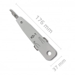 Profesionální úderový nástroj LSA/KRONE pro rychlé a přesné zakončení vodičů v telefonních a síťových zásuvkách. Nabízí spolehlivé zalisování, automatické odstřižení přebytků a vysokou odolnost díky kalené oceli a tělu z ABS. Vhodný pro drát i lanko, stínované i nestínované kabely.