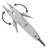 Tělo z odolného plastu ABS zaručuje pohodlný úchop a dlouhou životnost i při každodenním používání. Dva výsuvné boční prvky usnadňují protahování a vytahování vodičů, což urychluje práci při terminaci na patch panelech i zásuvkách.