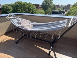 Hamak disponuje maximální nosností 250 kg, což zajišťuje bezpečné užití pro jednoho či dva uživatele najednou.