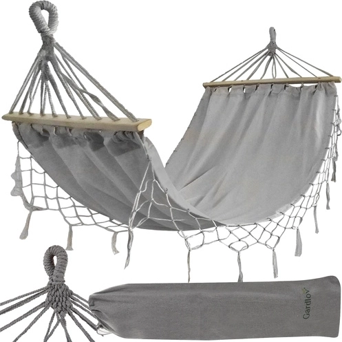 Objevte skvělou kombinaci stylu, pohodlí a trvanlivosti s touto zahradní hamakou značky Gardlov. Vyrobena z kvalitní směsi 65% bavlny a 35% polyesteru, hamaka je prodyšná, odolná vůči roztržení a nabízí dlouhotrvající komfort při každém použití. Díky stabilním dřevěným tyčím o délce 100 cm si užijete více prostoru pro odpočinek bez zamotání lan a sklápění se do kokonu.
