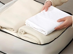 Organizér pojme ložní prádlo, sezónní oblečení, přikrývky, ručníky a další textilie, umožňuje jejich uspořádání ve skříni, pod postelí nebo na polici.