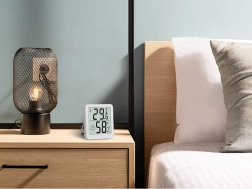 Kompaktní tělo 5,5 × 4,5 × 1 cm šetří místo a hodí se do ložnice, dětského pokoje, kanceláře i skleníku.